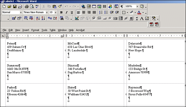 Create a data merge file in CSV or HTML format, without merging the data into a template at this time. Select Mergefile CSV or Mergefile HTML from the Create Mailing options. The merge file can be viewed and used as a data source in Microsoft Word and other mail-merge programs.  The merge file can also be imported into spreadsheet and/or database programs such as Access and Excel. In addition, if you choose the Save Query Results checkbox, the query results can be given a unique name and saved for re-use later on; the query results can be accessed by selecting Miscellaneous> Mailings>Extract Results to display the Data Extract Results screen.