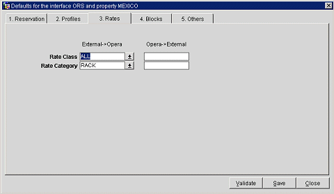 This default page is the rate default page. The OPERA values can be chosen by selecting the button seen alongside the text entry field. A list of configured and valid OPERA values for this item displays. The external system values have to be inserted in a free- format style, but need to be valid for the external system to accept the record. Be aware of case sensitivity.