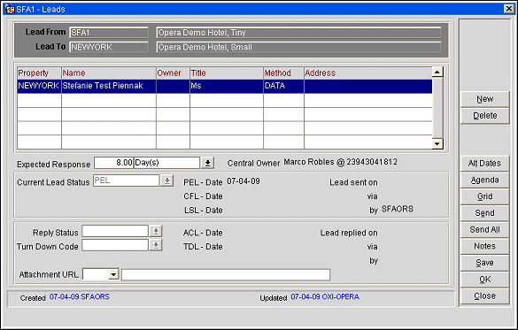 Note: When a new owner is added to a lead at the property level, the Name LOV only displays those owners that belong to the lead property; not all owners in the schema. See Hotel Contacts Tab for more details.