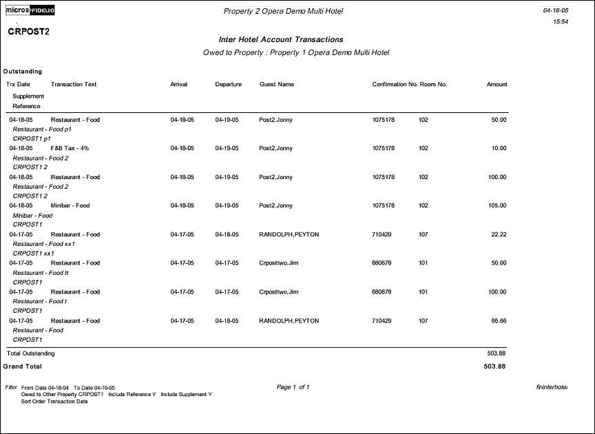 This report is available when the OPP_MHT3 Opera Property Management Multi-Property (Cross Revenue) license is set to Y.