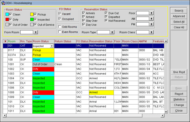 Odd Rooms. Displays all odd rooms matching the criteria chosen in the Room Status search.