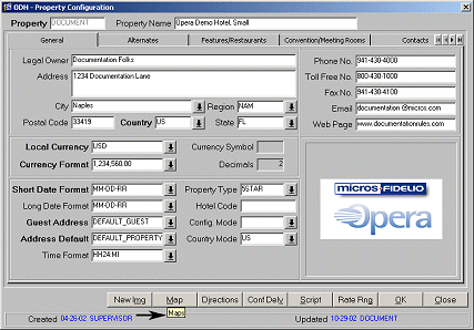 The Configuration>Property>Property Details>highlight a property>Edit>Map button will be visible with the property’s activation of the Multi-Property Cross Reservations add-on license code OPP MHT2 (Multi-Property Cross Reservations) as the map images are visible only from within the cross property reservation flow. The Map button will display a list of image files in .GIF or .JPG format from the Map Image Maintenance list.