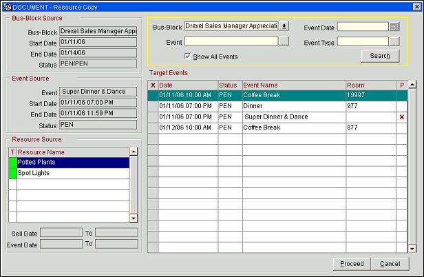 Event. Select the ellipsis to call the Event Search screen and select the event that should receive the moved/copied resource. This filter is only accessible if the Show All Events check box is NOT selected.