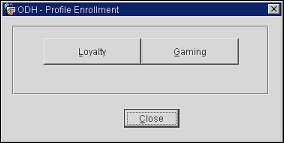 To access the Gaming Enrollment screen, highlight the guest's name on the Profile Search screen (Reservations > Profiles) and select the Enrollment button. Or, select the Enrollment button from the Profile Options menu (select the Options button from the guest Profile screen) or from the Profile Membership List screen (available when you select the Memberships button from the Profile Options menu). You can also access enrollment when creating a new reservation. From the New Reservation screen (which appears when you select Reservations > New Reservation), enter all or part of the guest's name. Select the Search button to display the Profile Search screen, from which you can select the Enroll button. The Profile Enrollment screen appears.
