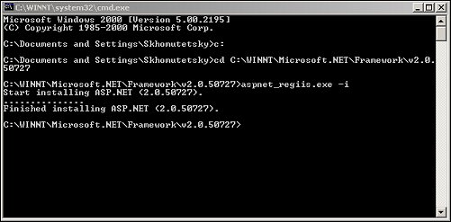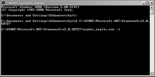 - Using the dos commands, change directories to C:\WINNT\Microsoft.NET\Framework\v2.0.50727.