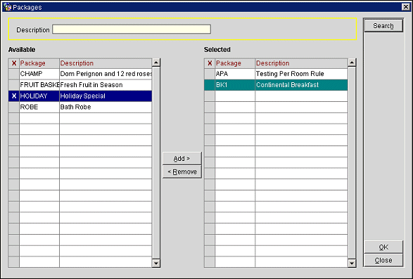Remember that you do not sell packages directly. Packages can be attached to either a rate code, to a reservation, or to a rate code and a reservation.