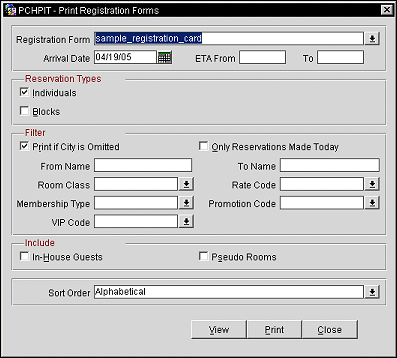 Print If City Is Omitted. Select to print the registration card, even if the city has not been entered for the guests profile.