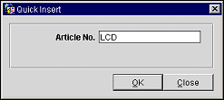 Quick Insert (Business Management>Events>Resources>Quick Insert) allows you to quickly add the exact resource you need to an event without having to filter through multiple search results on the Select Item(s) screen. It is necessary to know the article number for the required item when adding it through quick insert, as it is the only criteria required to add the item to the event resources. The article number is configured on the appropriate item and can be alphanumeric. For example, an LCD projector can be configured at LCD1234 or simply LCD.