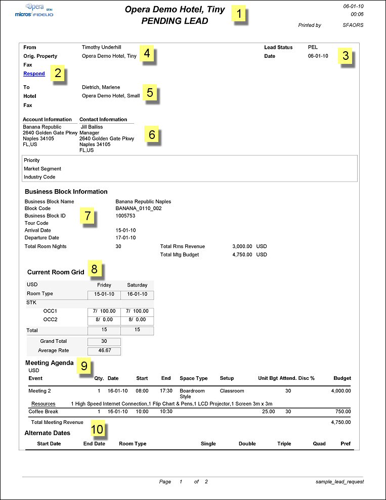 Alternate Dates. When the application function Blocks > Alternate Dates is active, SFA may have suggested alternate dates for this booking. Direct Dates or Date Patterns can be entered and the receiving properties can accept one or multiple suggested dates. Alternate Dates within the lead process can be updated for rates and preferred flag from within the lead receiving OPERA system, as well as from the Lead Webreply page. The alternate date records will allow for the entry or update of single, double, triple and quad rate amounts per room type/date range. Multiple date ranges can also be flagged as 'Preferred'.