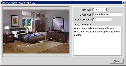 Room Type. Room type of the room number. If an image of this room type is available for viewing it is displayed when you click the room type. (See Room Picture and Description, below.)