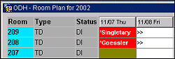 For example, suppose you want to move the guest in room 207 to room 209. Place your cursor on the guest's name and hold down the left button.