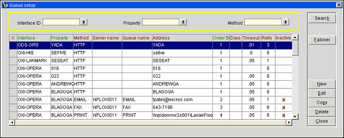 Search. Search for queue setup records based on the filters set in the yellow marked search area.