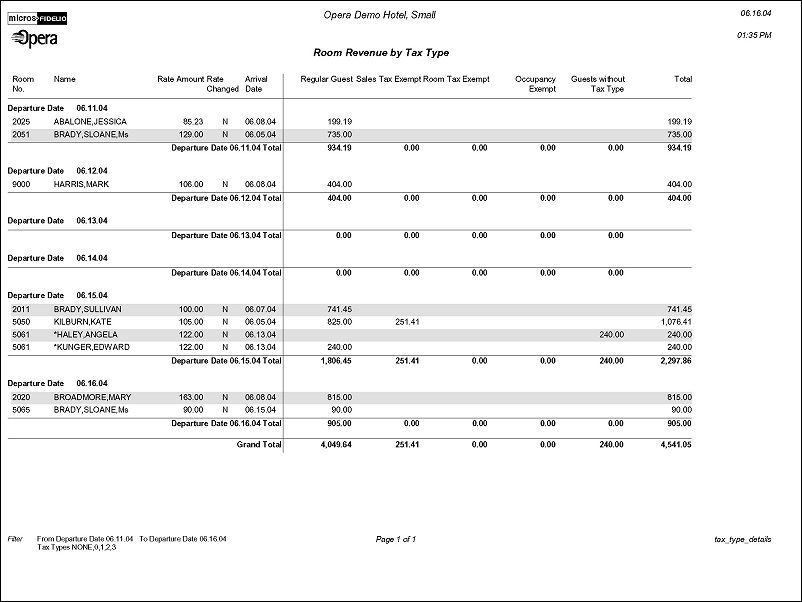 Room Revenue by Tax (tax_type_details with GEN1.FMX)