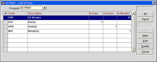 Select Setup>Configuration >Database>Time Units to define the time units to be available from the Activity screen.