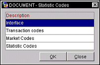 As required, select the check boxes for Transaction Codes, Market Codes, or Statistic Codes and then select OK.