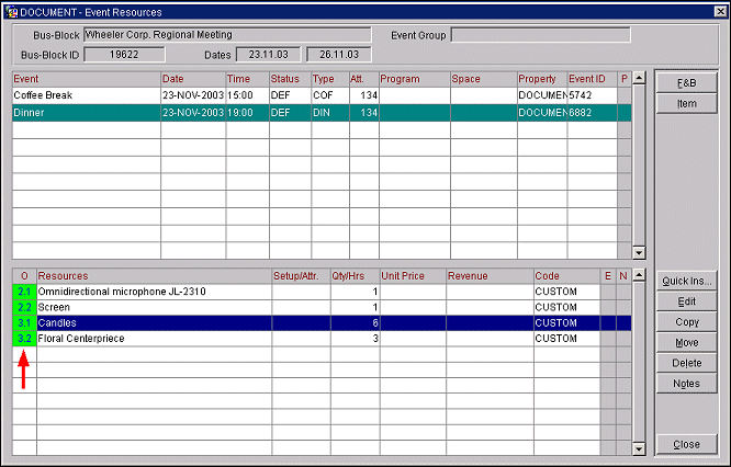 For example, suppose the following item order is specified for an event on the Event Resources screen (Business Management>Events)